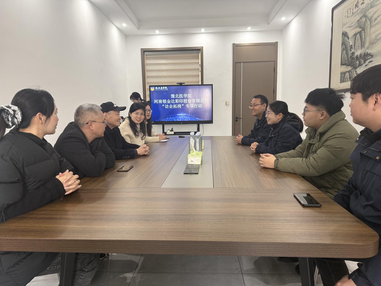 我院英语专业访企拓岗促就业行动进行中:为积极落实豫北医学院访企拓岗促就业工作要求,进一步拓宽2026届毕业生实习与就业渠道,精准对接企业人才需求,12月17日,我院院长端木庆一带队前往河南银金达彩印股份有限公司,举行实习就业合作交流座谈会。